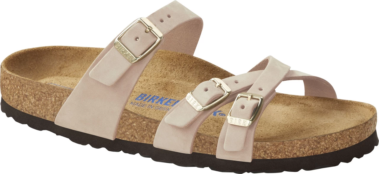 Englin’s Fine Footwear presents the women’s ‘Franca Soft Footbed’ from Birkenstock. An elegant model – the Franca – designed with slim, stylish crisscrossed straps. Featuring an impressive combination of design and wearability for all day comfort. With its additional foam layer, the soft footbed offers extra comfort and pampers feet – all day long. The upper is made from high-quality, soft nubuck leather.
