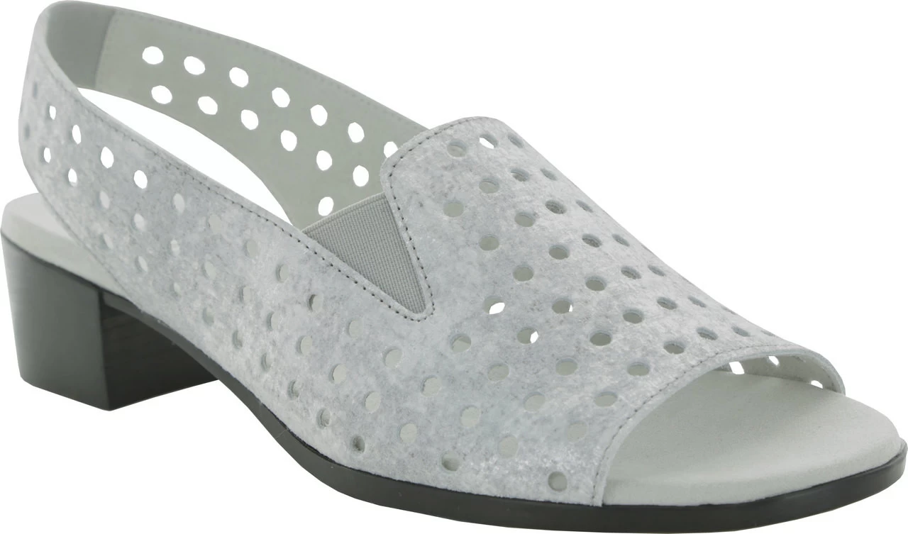 Englin’s Fine Footwear presents the women’s ‘Mickee’ from Munro. A comfortable sling-back sandal with a perforated unlined upper on a one-inch Cuban heel. The padded sock is wrapped in microfiber for comfort. The soft nubuck upper conforms to the foot. Dress for success and comfort with Munro. Your feet will thank you!