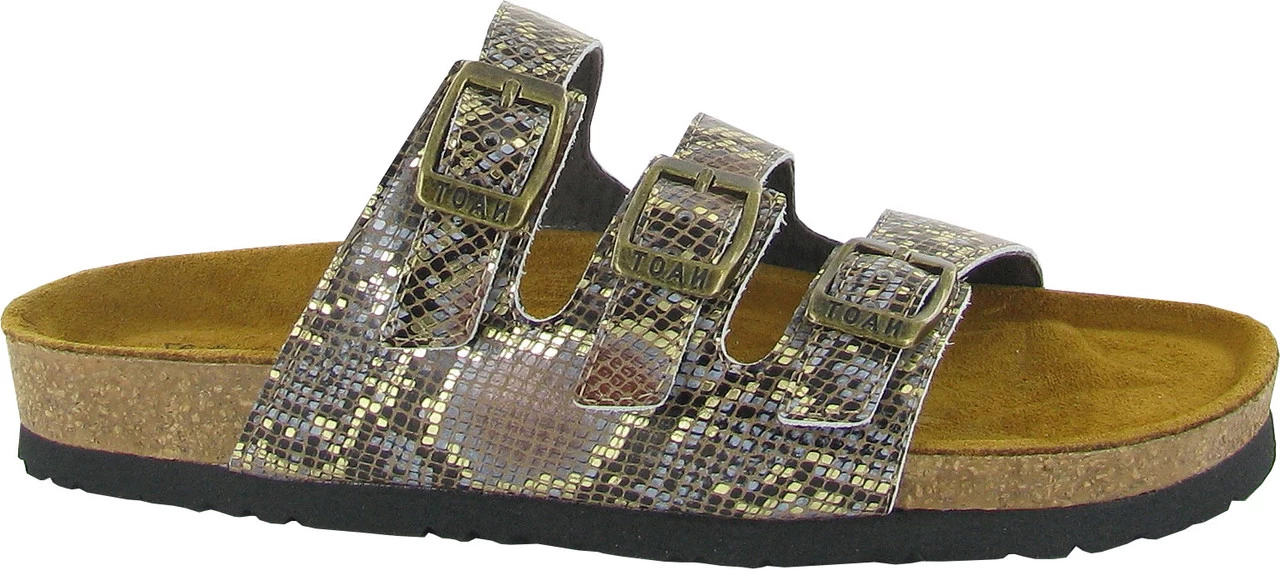 Englin’s Fine Footwear presents the women’s ‘Austin’ from Naot. The Austin is a classic multi-strap slide. This style features three buckle closures for full adjustability. Naot’s anatomic cork & latex footbed is wrapped in a pampering suede and molds to the shape of the foot with wear. The Classic Collection features a 1.25″ EVA sole.