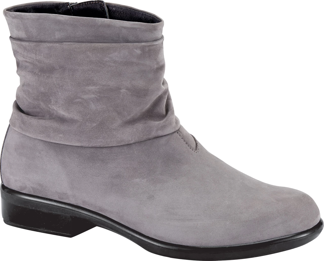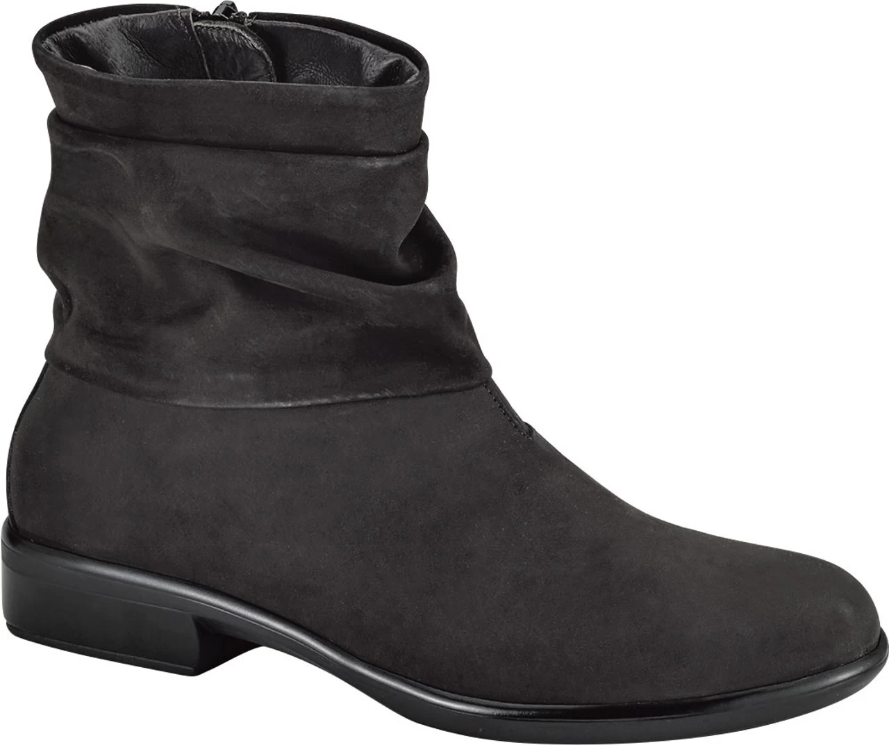Englin’s Fine Footwear presents the women’s ‘Brisote’ from Naot. Combining cute folds with smooth, neutral nubuck, the Brisote is a boot that packs timeless fall fashion. Its look is only enhanced from within by Naot’s removable, anatomic cork & latex footbed, which is wrapped in microfiber & leather and molds to the shape of the foot with wear. The Aura Collection features a 1.5″ polyurethane sole with a metal shank which is extremely lightweight, durable & abrasive to prevent slipping. This collection uses a hand-sewn stroble construction making it strong and extremely flexible.