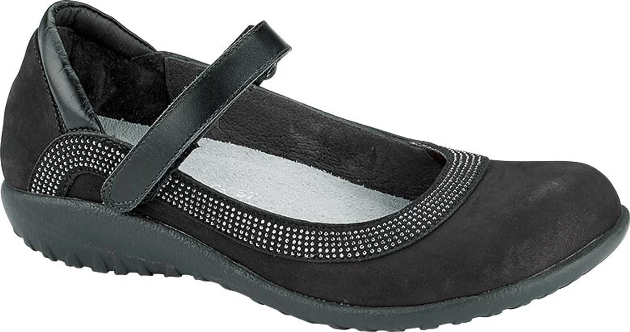 Englin’s Fine Footwear presents the women’s ‘Tahi’ from Naot. The Naot Tahi is a stylish Maryjane with rivet accents. The front portion of the Tahi features padded technical lining and the back has a padded heel cup for extra comfort. The Koru Collection features a 1″ polyurethane sole which is extremely lightweight, durable & slip resistant. This collection uses a hand-sewn stroble construction making it strong and extremely flexible.