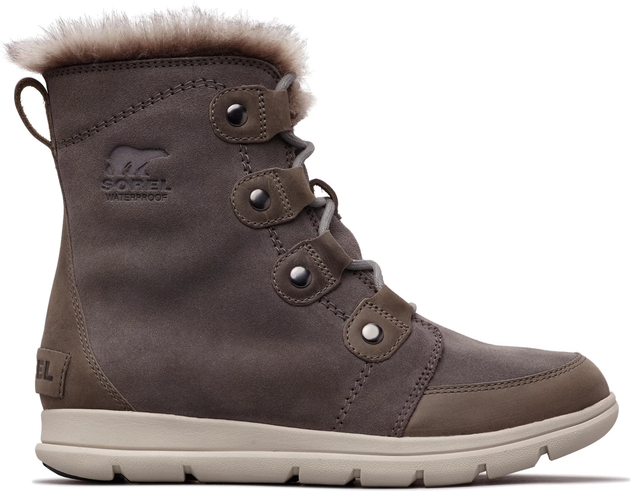 Englin’s Fine Footwear presents the women’s ‘Sorel Explorer Joan’ from Sorel. The warmth of a winter boot meets the fit of a sneaker with the stylish Joan. Crafted with a combination of supple waterproof leather-and-suede and featuring a faux fur collar, this stylish boot can take you from city to cabin. With a slim silhouette that won’t weigh you down, 100g insulation, and a molded EVA comfort footbed, you’ll be walking on clouds all winter.
