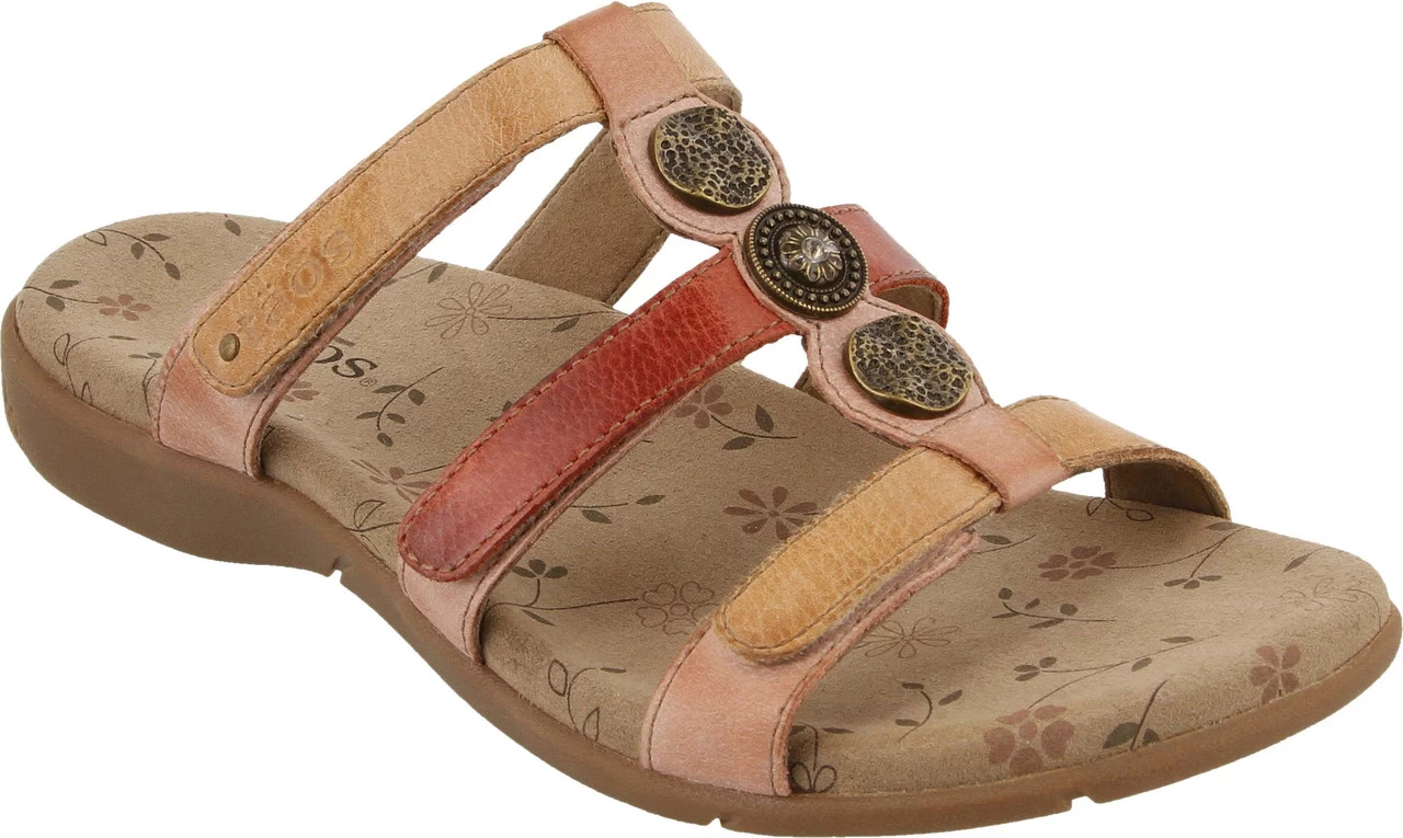Englin’s Fine Footwear presents the women’s ‘Prize 3’ from Taos. This go anywhere leather sandal is right for just about any occasion and really will become your prize possession. The medallion and jewel hardware adds beauty and personality. Three hook and loop straps deliver the perfect fit, while outstanding comfort comes from Taos Soft Support™. Taos Soft Support™ features our premium footbed with arch and metatarsal support and Cool Recovery Foam®.