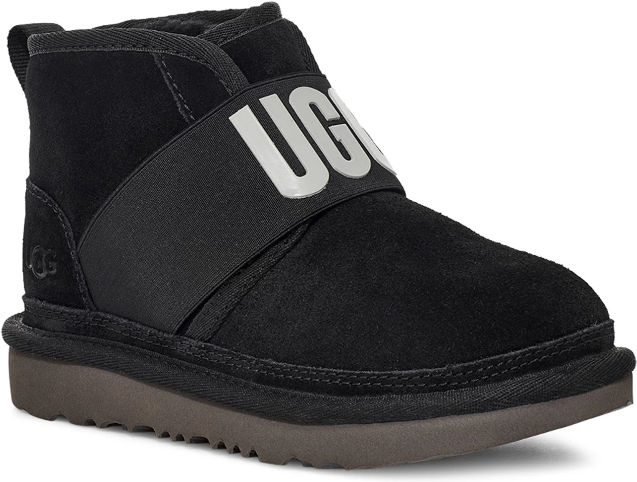 Englin’s Fine Footwear presents the kid’s ‘Neumel II Graphic’ from UGG. Swapping laces for elastic to provide style, flexibility, and kid-friendly entry, this updated take on the bestselling Neumel Boot is crafted from our signature suede lined in cozy UGGpure™ wool. Adding color pop details on the strap and pull tab, it’s finished with a cushioned Treadlite by UGG™ sole for all-day play.